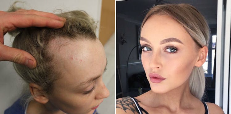 Hollands, 22, blames her bun for a hairline that receded to the middle of her scalp. She told the press she was constantly bullied about her appearance, and that insecurity stretched into adulthood. After two pregnancies, she'd lost even more hair.