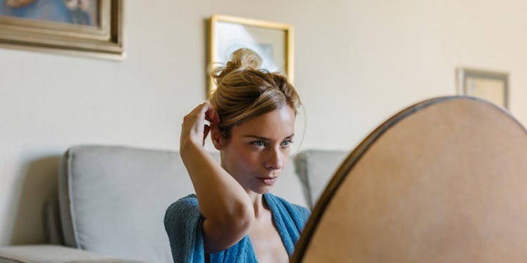 Instead of tugging on your hair like your life depends on it, try pinning it back with bobby pins or using a soft hair tie.
