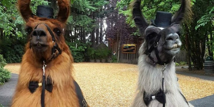 Basically, if your wedding is being held in either Portland, Oregon or Vancouver, Washington, you are the luckiest person alive because that means you can rent any or all of Mtn Peaks' awesome llamas (named Rojo, Smokey, Diego and Jean-Pierre) to be guests at your wedding — and they'll even dress up.