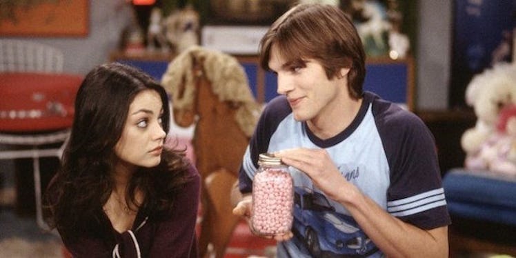 In case you didn't know, Kutcher and Kunis got their claim to fame when they starred as Kelso and Jackie on That '70s Show. (How do you not know this by now?) Their characters had one of the longest relationships on the show, and their first kiss on-screen was actually Kunis' first kiss ever. And now they have babies!! Ugh, ain't love grand.