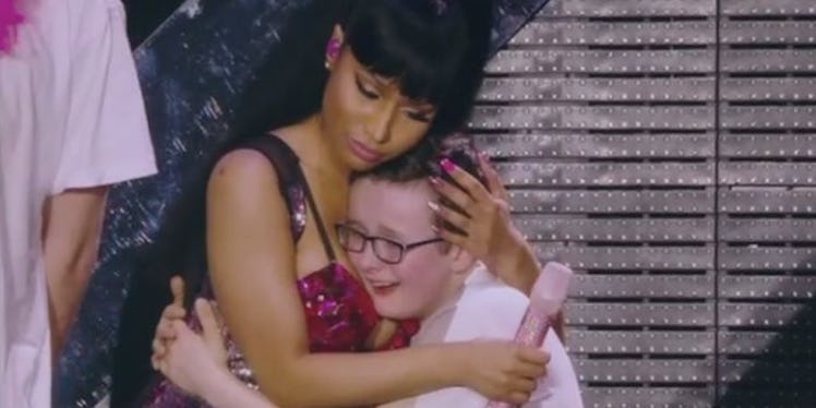 His name is Donnie, and he somehow found himself onstage at a Nicki Minaj concert. He immediately began bawling and saying he had been dreaming of this moment for so long.