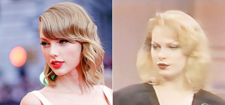 The internet is freaking out over an old photo from the '90s of a woman who looks identical to Taylor Swift. They seriously look like twins, it's insane.