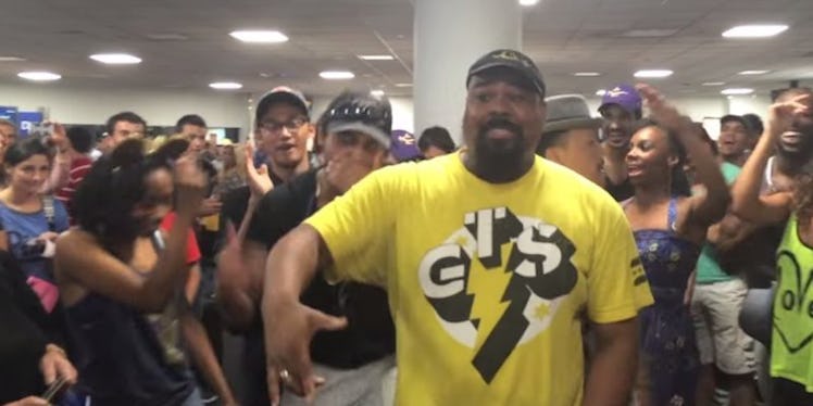 Somehow, the group of talented performers got to singing, and soon, a full-on a cappella sing-off broke out in the middle of the terminal.