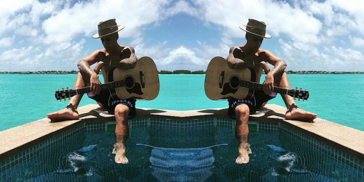 Our baby boo was apparently vacationing in Bora Bora. It must have been a very relaxing trip because Biebs decided to really live it up by stripping down. He must have had an itchy bathing suit or something, IDK, but he had a nice little walk around the block butt nakey.