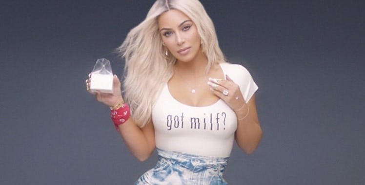 So here's where things get interesting. In Fergie's new video, Kim Kardashian has a scene where she looks into the camera all sexy and wears a "got milf?" T-shirt.