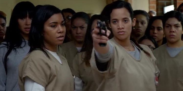 When we left off in Season 4, the inmates were revolting, the guards were scared, and Daya had a gun pointed at a CO's face.