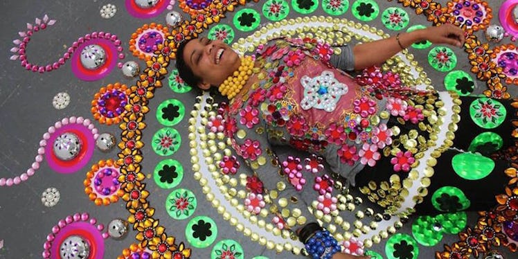 Citations: Artist Puts 1000s Of Glittering Gems On Floors, Walls, and People To Create Kaleidoscopic Mandala Art (Bored Panda), Kaleidoscopic Sublime: Interview with Suzan Drummen (Irenebrination)