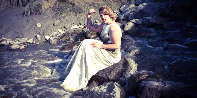 After surviving a couple derby endeavors, Rumfelt and her recently-divorced friend, Laura Burns, grabbed their wedding dresses and went for a little swim in Reed Lakes.