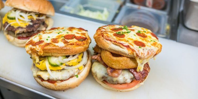 All other burgers aside, I highly suggest ditching that weak slice of pizza for something a lot more fulfilling... Like the rule-breaking "Meatzza" burger.
