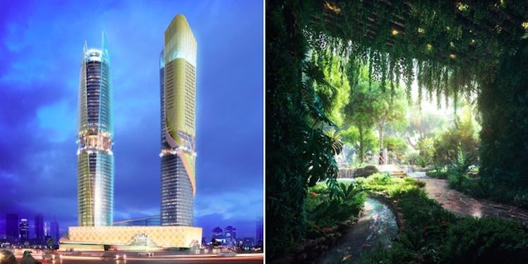 ...and this bougie $300 million building is going to be the first hotel in the world that has a rainforest inside of it.