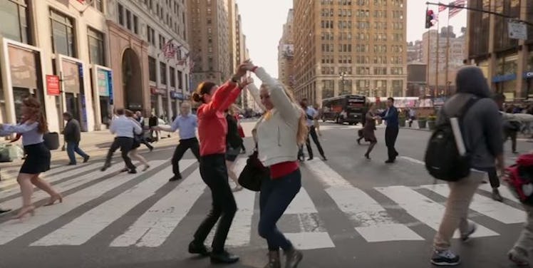 This week, Improv Everywhere, the gag geniuses behind the "Food Court Musical" and the annual "No Pants Subway Ride," brought a little magic to the ultra-dismal transit stop with “Surprise Ballroom Dancing in a Busy NYC Crosswalk.”