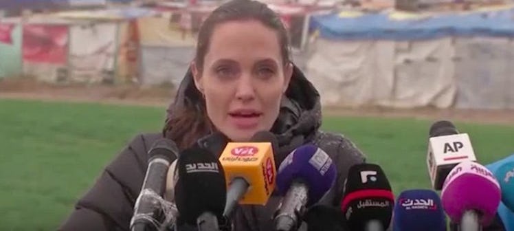 Speaking from a refugee camp in the Bekaa Valley in Lebanon, Jolie stated,