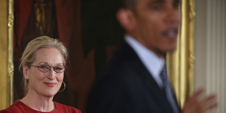 Anywho, just so we're clear, former President Obama seems to be just as much of a fan of Streep's as she is of him. During the 2014 ceremony in which he awarded her the Medal of Freedom, Obama said,