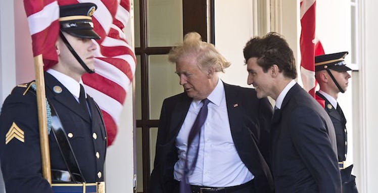 During President Trump's meeting with Canadian Prime Minister Justin Trudeau on February 13, a rogue gust of wind blew through the scene as the two men prepared to enter the White House.