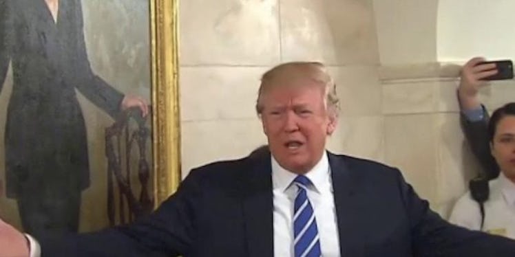 President Donald Trump decided to surprise a White House tour group today, and he couldn't have walked out at a more serendipitous moment.