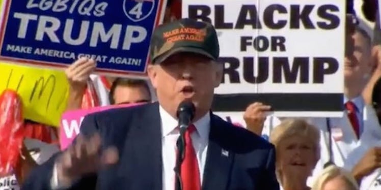 In an election where Trump has habitually made claims that aren't even close to being true, it feels somewhat fitting a white woman literally held up a "Blacks for Trump" sign.