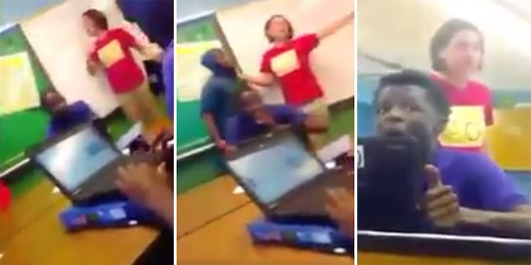 After kicking a student out of class, you can hear the white teacher rant and say,