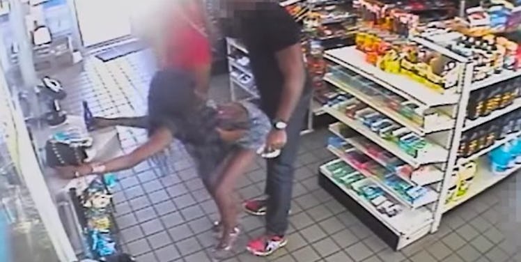 Footage captured in a Washington, DC convenience store on October 7 shows a woman wearing a very revealing dress preparing to pay for her items while her friend, also in a tight dress and heels, walks behind her.