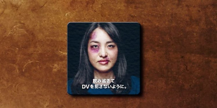 To raise awareness about the connection between drunkenness and abuse, a Tokyo bar chain, Yaocho, printed cold-reactive drink coasters and gave them out to bar guests. At first glance, customers only saw the face of an average woman.