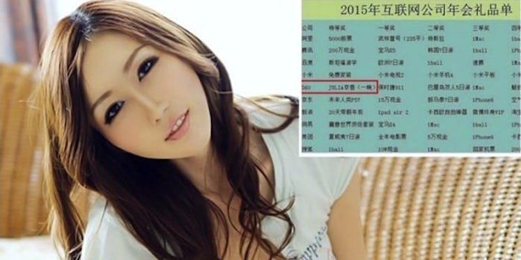 The story can be traced back to the Chinese website On.cc, which posted a grainy image of the list elegantly translated as "Web Companies Annual Meeting Gift List 2015 (Confidential), " which is listed in the same tier as a Porsche 911 and a week-long vacation to Bali.