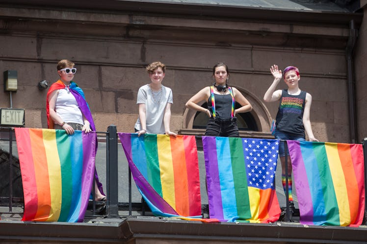 There's something amazing about the women in the top apartment in this photo — even if they're not fully celebrating the Pride parade, they're sort of involved. Because how could they not be?! The enthusiasm of the lower balcony is parade goals.