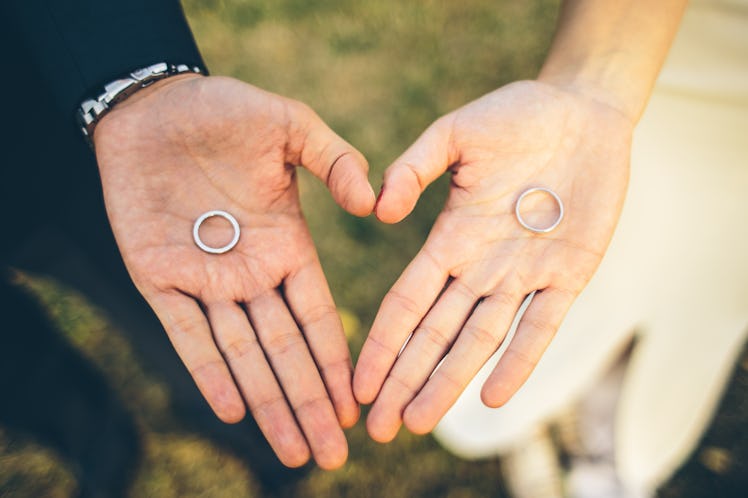 When it comes to all aspects of weddings, you get to do what feels right for you. If you're not super into rings, it's totally OK to nix the tradition. Maybe you and your boo would rather spend the money on a trip around the world or put a down payment on a house. Maybe you want to have a ring but don't like to wear it. Whatever the case, you get the final say in who you marry and how you marry them. From no rings to "7 rings" to a sour cherry Ring Pop (lots of pop culture references there, wow), there is no one way to rock your wedding bling.