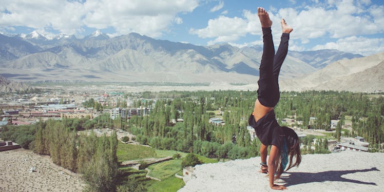 Use adho mukha vrksasana as a source of playtime and freedom, and remember: If you fall, you'll always have another chance to nail the pose. Similarly, if you don't realize your dreams on the first try, a little dedication and consistency can go a seriously long way.