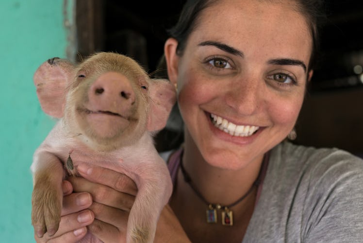 Just look how satisfied this pig seems with his carefree grin. He's just happy to say hello. I seriously cannot handle this pic, and my heart is melting pig time. If this pig had an Instagram, I would follow him in a heartbeat. Just imagine the selfies we would get to see.