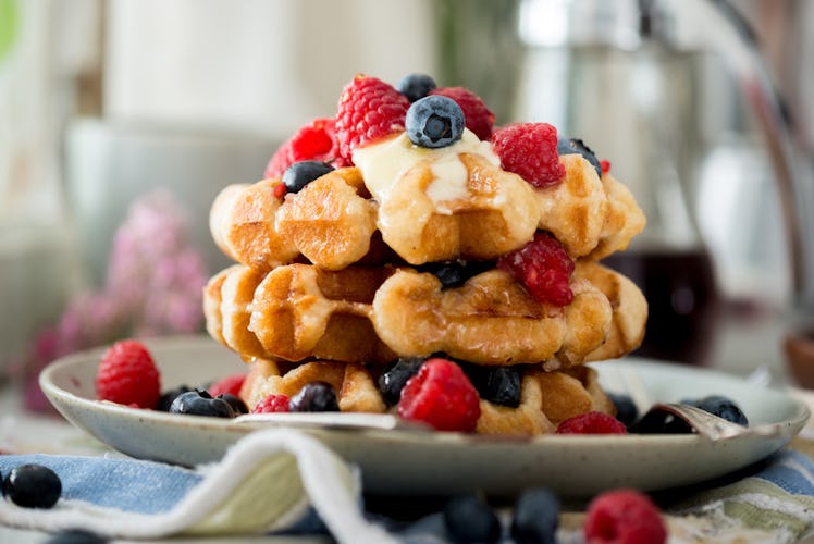 If there's a pancake bar, of course, a waffle bar exists. Set up a waffle maker with some batter. Your guests can make their own waffles all day, and add toppings such as sweet fruit, yogurt, syrup, or gelato. We know Leslie Knope from Parks and Recreation would totally approve of this wedding.