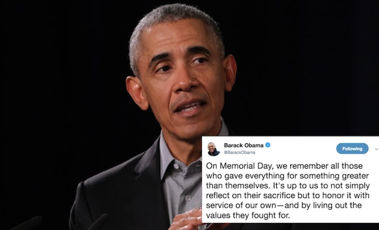 Like always, Memorial Day 2019 inspired U.S. residents to honor late military members with monuments, parades, and posts. That includes former president of the United States, Barack Obama, who used Twitter to show his support. Like other notable political figures, Obama tweeted about the holiday and talked about its undeniable importance. TBH, Barack Obama's Memorial Day 2019 tweet is so emotional that it might make you tear up. Not only does it shed light on the true meaning of Memorial Day, but it also urges people to embody the values that fallen soldiers fought for.