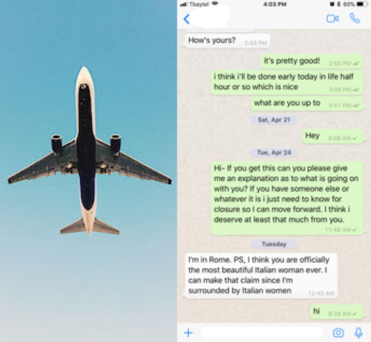 My main issue here? The fact that the last message he chose to send her BEFORE BLOCKING HER was 1) telling her how beautiful she is and 2) informing her that he's actually in another country on vaycay... ?!?!?! WTF?