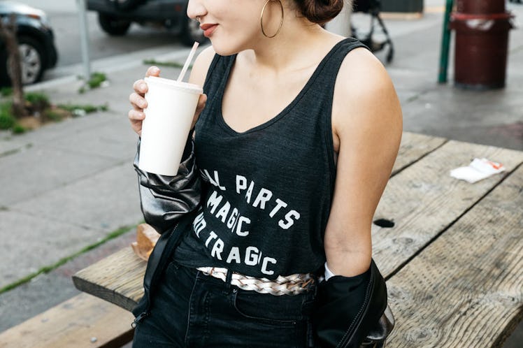 In case you aren’t up to speed on weed lingo, and your eyes bugged out at the thought of casually getting high off of a glass of soda with dinner, chill out; CBD doesn’t come from the part of a cannabis plant that gets you stoned. CBD actually stands for "cannabidiol," which, according to Dr. Gabrielle Francis, a naturopathic doctor practicing in New York City, is a chemical compound that makes up about 40 percent of the plant's extract. THC, or tetrahydrocannabinol, is the compound that gives marijuana its psychoactive effects — aka the thing that does get you high. CBD, on the other hand, Francis tells Elite Daily, “helps to regulate function of mood, inflammation, immunity, sleep, hormones, metabolism, nervous system and appetite.”