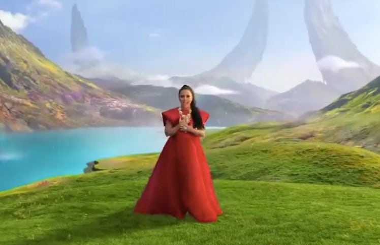 We see our queen, Demi Lovato, absolutely crushing it in a stunning red dress, surrounded by (very flexible) dancers covered in jungle-like attire, singing in what seems to be the very backdrop of A Wrinkle In Time's far-off distant place: