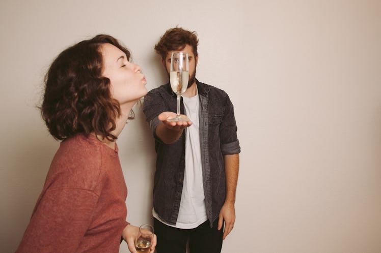 Planning on getting a little tipsy in the hours leading up to Time Square’s disco ball drop on Dec. 31? Popping bottles on New Year's Eve can definitely have you and your squad feeling fly like a G6 in no time — at least, that’s certainly how it feels, anyway. A lot of people throwing back glass on sparkling glass of the bubbly stuff will tell you the bev gets you buzzed more quickly, but does champagne get you drunk faster than any other celebratory cocktail?