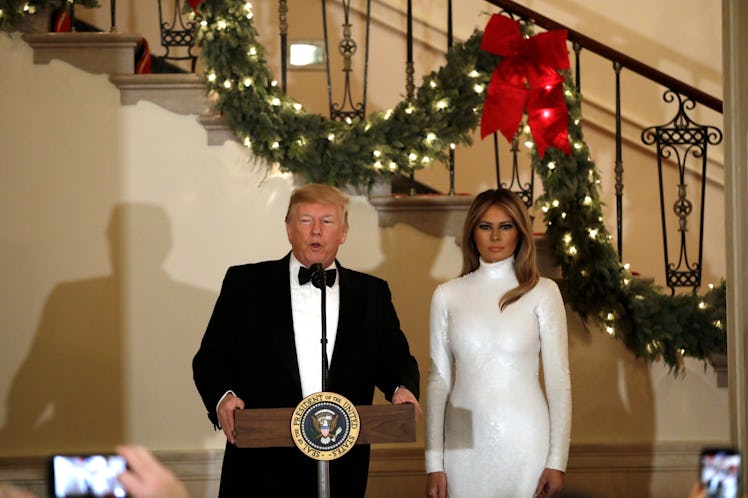 "Merry Christmas from President Donald J. Trump and First Lady Melania Trump," read a Twitter post by the first lady on Tuesday, Dec. 18, as the official White House Christmas portrait was released. But while most of us would simply write a quick, "Happy Holidays!" on the back of the photo and call it a day, you know the White House has to get fancier about it.