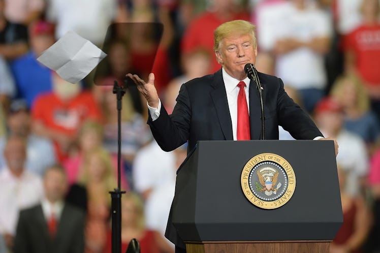 The president's feud with McCain had been going on since 1999, per TIME, and was based on a number of different beefs they had with each other, which only worsened during the 2016 campaign and into Trump's presidency. McCain was most known, recently, for his jaw-dropping thumbs down vote on the GOP's "skinny repeal" bill that sought to undo key parts of the Affordable Care Act (ACA), also known as Obamacare. He was also an advocate for immigration reform and publicly condemned the administration's move to separate migrant families under the zero-tolerance policy. Trump, as a candidate for president, shaded McCain for being held captive during his time as a prisoner of war in Vietnam. McCain, meanwhile, rescinded his support of then-candidate Trump when news of the Access Hollywood tape came out revealing crude remarks he'd apparently made about women.