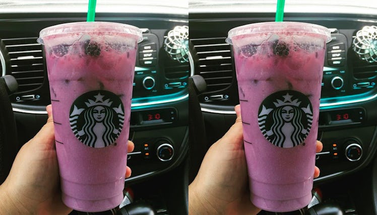 Luckily, ordering one of these babies is easy peasy, and does not require too many ingredients. According to the Starbucks Secret Menu website (which is not an official secret menu), the ingredients needed to make a Purple Drink include a base of Passion Iced Tea, a healthy amount of soy milk, a touch of vanilla syrup, and — last but not least — a few generous scoops of blackberries. The site recommends substituting the soy milk for coconut milk, if you'd like an even lighter taste (that is, if you like the taste of coconut!). Either way, you'll have successfully ordered yourself a Purple Drink. You could even make one yourself, if you wanted to.