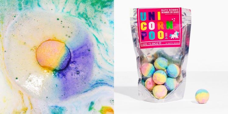 Simultaneously balancing a full time job, a healthy lifestyle, and an active social life can be a lot to handle at times. Let's face it: Adulting can be really hard. But after a long day, there's something special about unwinding with a warm, soothing bath. And whether you prefer to take the plunge with a glass of wine, some music, or a tabloid magazine, a bubble bath can answer pretty much any and every problem. If you need a little extra magic to convince you otherwise, though, you might need a colorful bath bomb. In fact, here's where to get "Unicorn Poo" bath bombs. Yeah, unicorns do exist, and bathing with their "poo" will make you feel like a damn rainbow.