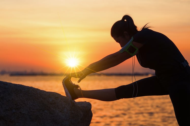 Dr. Alex Tauberg, an evidence-based sports chiropractor and certified strength and conditioning specialist, recommends something similar for an a.m. workout to get your blood pumping: a 20- to 30-minute run. "[Running is] easy to do, and you can do it without having to go to a gym, which saves time," Tauberg tells Elite Daily. "If you have a street you can run on, that is optimal, and then it will probably take you around 10 to 15 minutes to shower and get ready for the rest of your day."