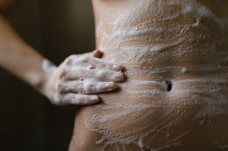 Dr. Jess O’Reilly, host of the @SexWithDrJess podcast, tells Elite Daily you can really just hop in the shower after period sex. “You can clean your vulva (the area on the outside) using water and your fingers. Do not spray water inside of the vagina — just gently clean the outer area (lips)," she cautions. "If you want to use soap, use a mild, unscented version.” However, if showering isn’t an option, having some wipes handy is a great option too. “Use a gentle wipe like SweetSpot Labs’ unscented option,” advises Dr. O’Reilly.