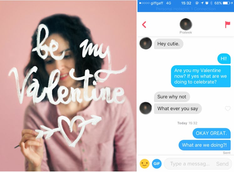 Confession time: I've never been on a real date for Valentine's Day. My past boyfriends and flings were always out of town, anti-Hallmark holidays, or considered drive-thru fried chicken to be the pinnacle of a romantic evening, which is only partially true. (And OK, there was the year I turned a balloon-toting fellow down at my door because, and I quote, "I'm too busy with these tacos." I'm so sorry, Allan!) But on the cusp of my 25th birthday, this felt like the perfect year to break that tradition. So I asked people out for Valentine's Day (on Tinder, of course), in an attempt to get a taste of that "roses are red" breed of romance before closing out my first quarter of a century.