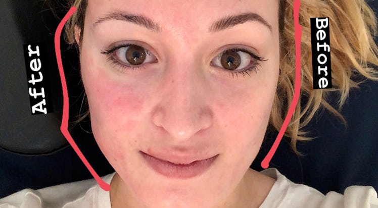 I have to admit, when I first saw the results, I was more than a little freaked out. I couldn't stop staring at my right cheekbone, which had been completely carved out in the best way possible. My normally rounder face was serving Chrissy Teigen-level high cheekbone realness, and comparing and contrasting it with the untouched other side was fascinating.