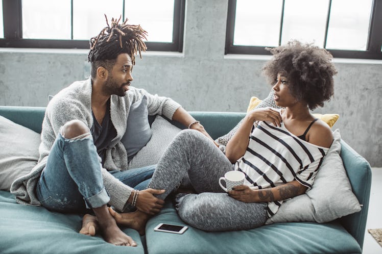 When bringing this up to your partner, Fehr suggests you don't have this conversation during sex or in the bedroom. "Timing this conversation during or after sex puts your partner into a highly vulnerable position to have to answer not only while they're aroused or relaxed post-coitally, but also when they're extra open," she says. "In a way, it's a manipulative tactic because it traps them." Apart from not "trapping" your partner into this discussion, you also shouldn't have what Fehr calls a "fly-by conversation," meaning, one that takes place while you're doing something else.