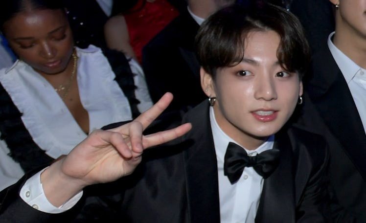 But let's back up for a sec. See, on Sept. 16, BTS was spotted at Incheon International Airport in Korea. At the time, a source from Big Hit explained that BTS had ended their period of rest and was flying out for a scheduled activity. Woot! Here's the thing, though. ARMY hadn't gotten a good look at the septet since the Lotte Duty Free Family concert back on Aug. 11 (outside of snapshots on Twitter), so it was mad exciting to see them — especially since they all looked so different from when fans last saw them. The most noticeable change in appearance was Jungkook's, who was now rocking much longer hair and what looked like some new ink on his right hand.