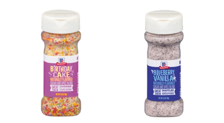 According to a McCormick representative in an email sent to Elite Daily, the Sugar & Spice Blends were released in July 2019 and retail for around $4.48. Instagram foodie account @CandyHunting first spotted the new sugar and spice blends in stores and shared it with fans on social media. The Sept. 10 post is captioned, "Sugar and spice and everything BIRTHDAY CAKE! McCormick has five new sugar and spice blends, which include Birthday Cake, Blueberry Vanilla, Apple Cinnamon, Vanilla Cinnamon, and Lemon Ginger. Found them at Meijer in with the spices." The new sugar and spice blends are all featured on McCormick's website, which gives a good rundown of the products. The Birthday Cake blend definitely stands out from the pack since it features bright and festive colors that will totally get you nostalgic for childhood birthday parties with fun decorations. The company describes the product as "a simple way to add the fun of a birthday cake to baked goods, desserts, milkshakes and more." Likewise, the Blueberry Vanilla blend is a flavor boost for "desserts and smoothies," and it's ideal for those looking for a more fruity punch.