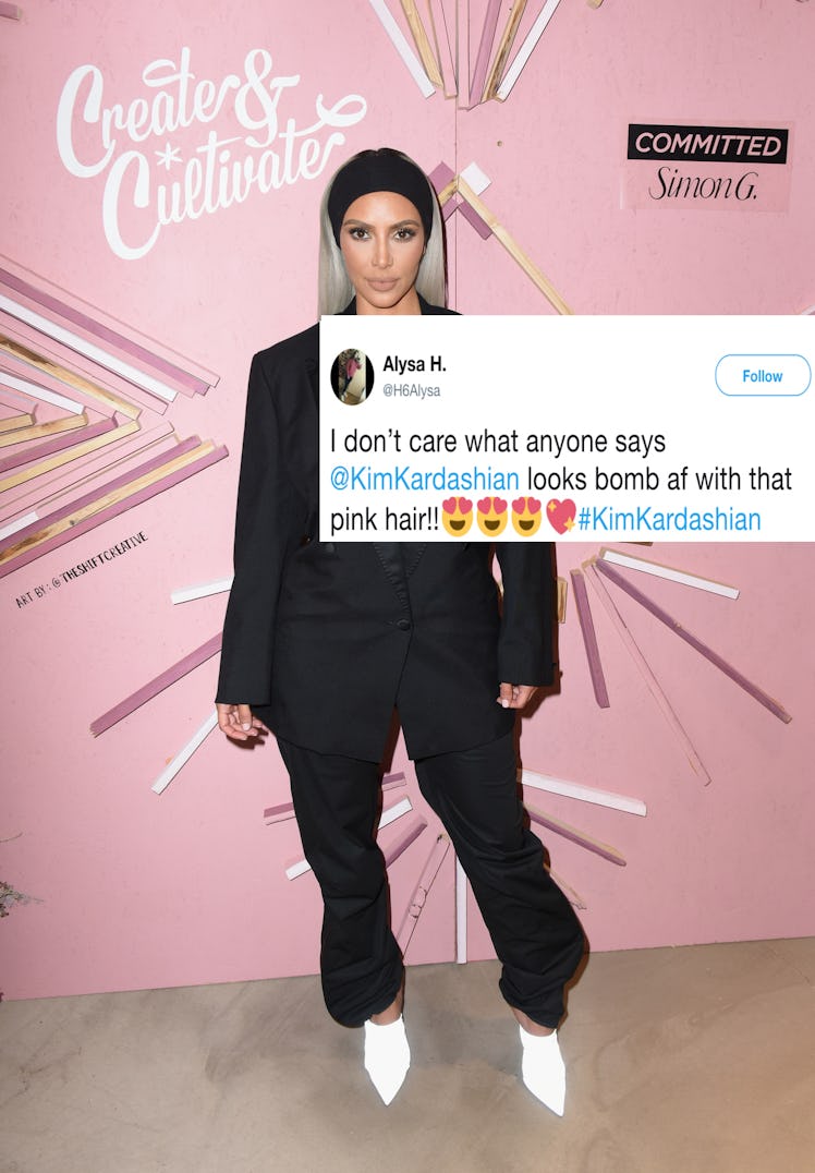 Clearly, the Kimarmy is smitten for pink. As for whether or not momager Kris will indeed spring for blush strands next, Jenner recently copied Kim's blonde hair, so maybe. Frankly, I am all for whimsical pink hair, and there's no age limit on the fun.