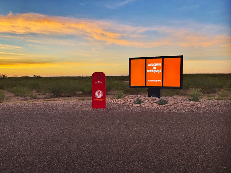 Here's how it works: Fans place their order at a standalone drive-thru menu board located in Fort Stockton, Texas, a small town on Highway 10. After a 12-hour and 800+ mile drive, orders will be ready for pickup at the flagship Popeyes store location on Canal Street in New Orleans, where the brave adventurers who undertook this journey will receive their meals for free. The point of the journey? To show travelers how long a 12-hour marinating process actually is and to celebrate the great taste of Popeyes chicken.