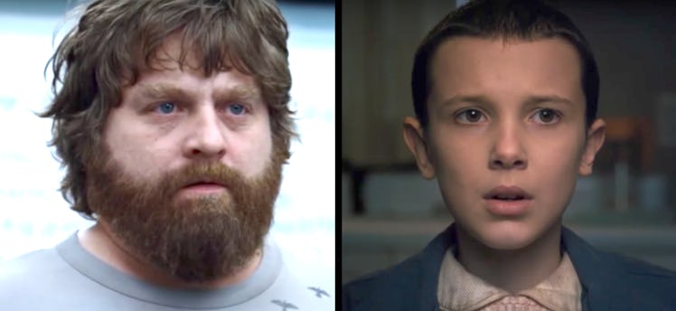 The new clip puts the Stranger Things kids side-by-side with the wolf pack from the 2009 comedy The Hangover and makes some hilariously convincing points about their similarities. At their core, both stories are about a group of friends trying to find their mysteriously missing buddy, which equates the Justin Bartha's abandoned Doug with the kidnapped Will Byers. But the similarities keep going. Ed Helms' Stu was notable for missing his teeth in the movie, just like Dustin. Bradley Cooper's Phil was characterized by his cool and skeptical demeanor, much like Lucas in Season 1. And finally, the trailer points out that both Eleven and Zach Galifianakis' Alan are dangerous newcomers to the group. I guess we really were just watching an aged-down, sci-fi version of The Hangover all this time.