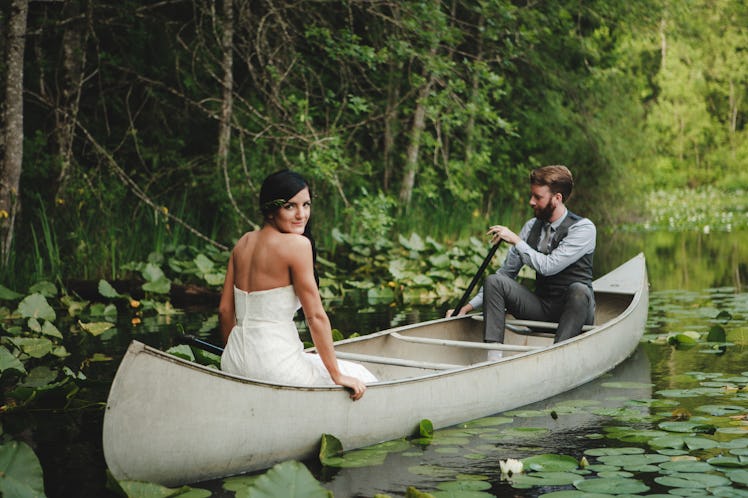 According to Janessa White, co-founder of Simply Eloped, 2020 means wedding dates with strong numerical patterns, "Any date that has a 2, twenty or that equals twenty will be popular," White tells Elite Daily. "Jan. 20, 2020, Feb. 18, 2020, March 17, 2020, May 10, 2020, May 15 2020, June 20, 2020, July 20, 2020. Especially Oct. 10, 2020! We are already completely booked full for elopements in one of our markets on that date." Repeating numbers or dates with a pattern can look super cute on an invitation or sign, and are likely to be a major wedding trend of 2020.