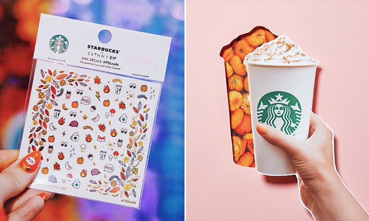 So, finally, the coffee giant figured out a way to help beauty junkies and PSL diehards show their love for the seasonal beverage. They teamed up with SkinnyDip London to create a collection of mini fall-themed decals so you don't have to spend the time and energy fumbling with tiny paint brushes ever again.